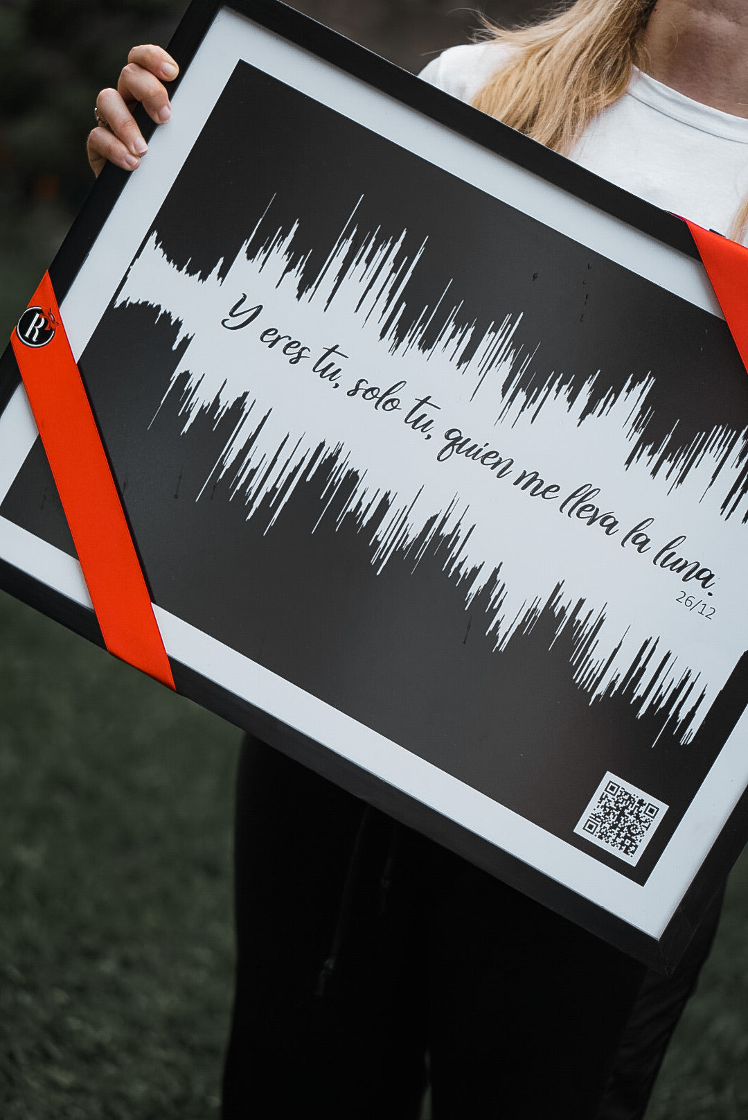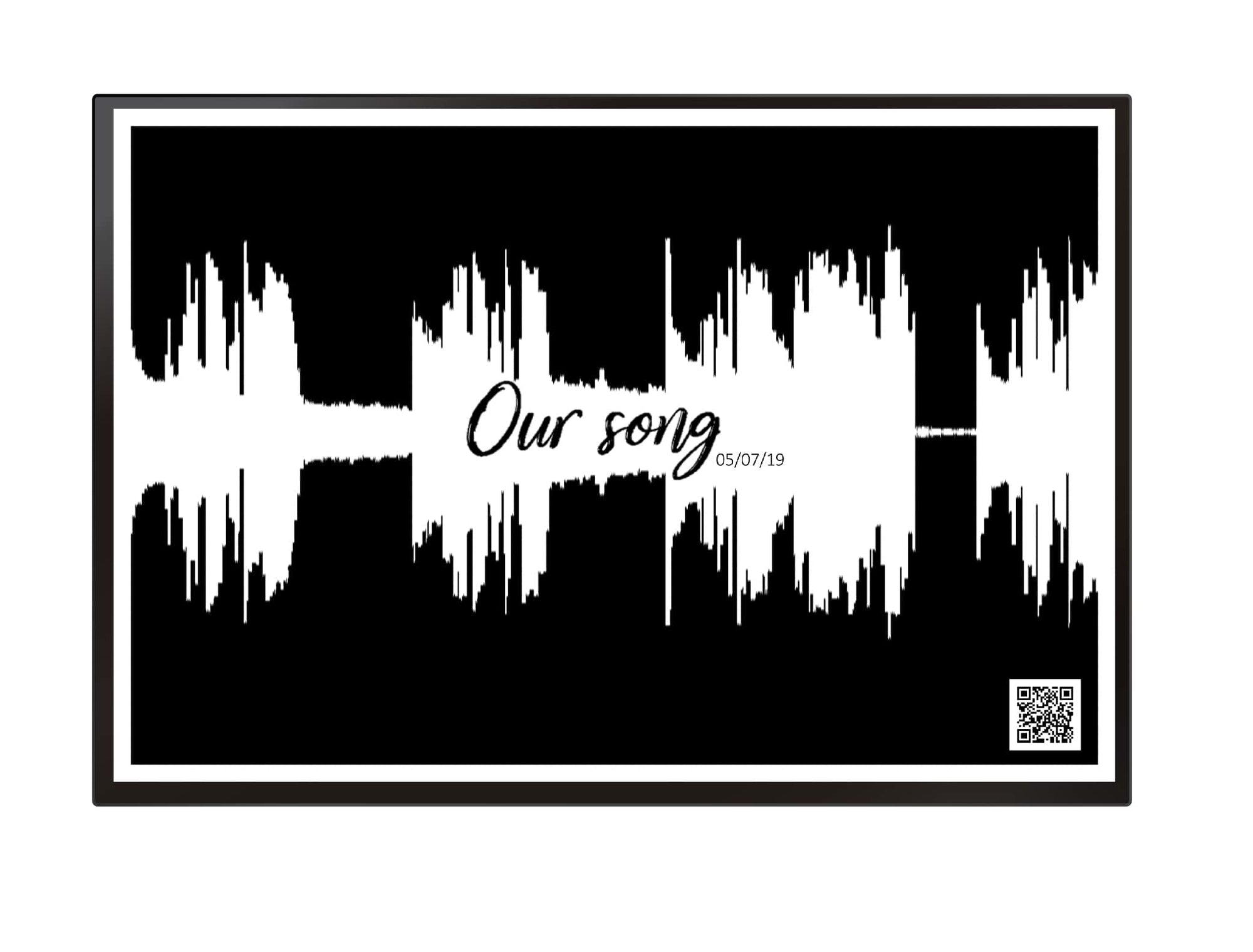 ¿Tienes una canción especial que quisieras recordar para siempre? El Cuadro con onda de sonido es perfecto para no olvidar esa ocasión, ya que le puede agregar la canción, una frase, una fecha, y un código QR que lleva al video de esa canción.